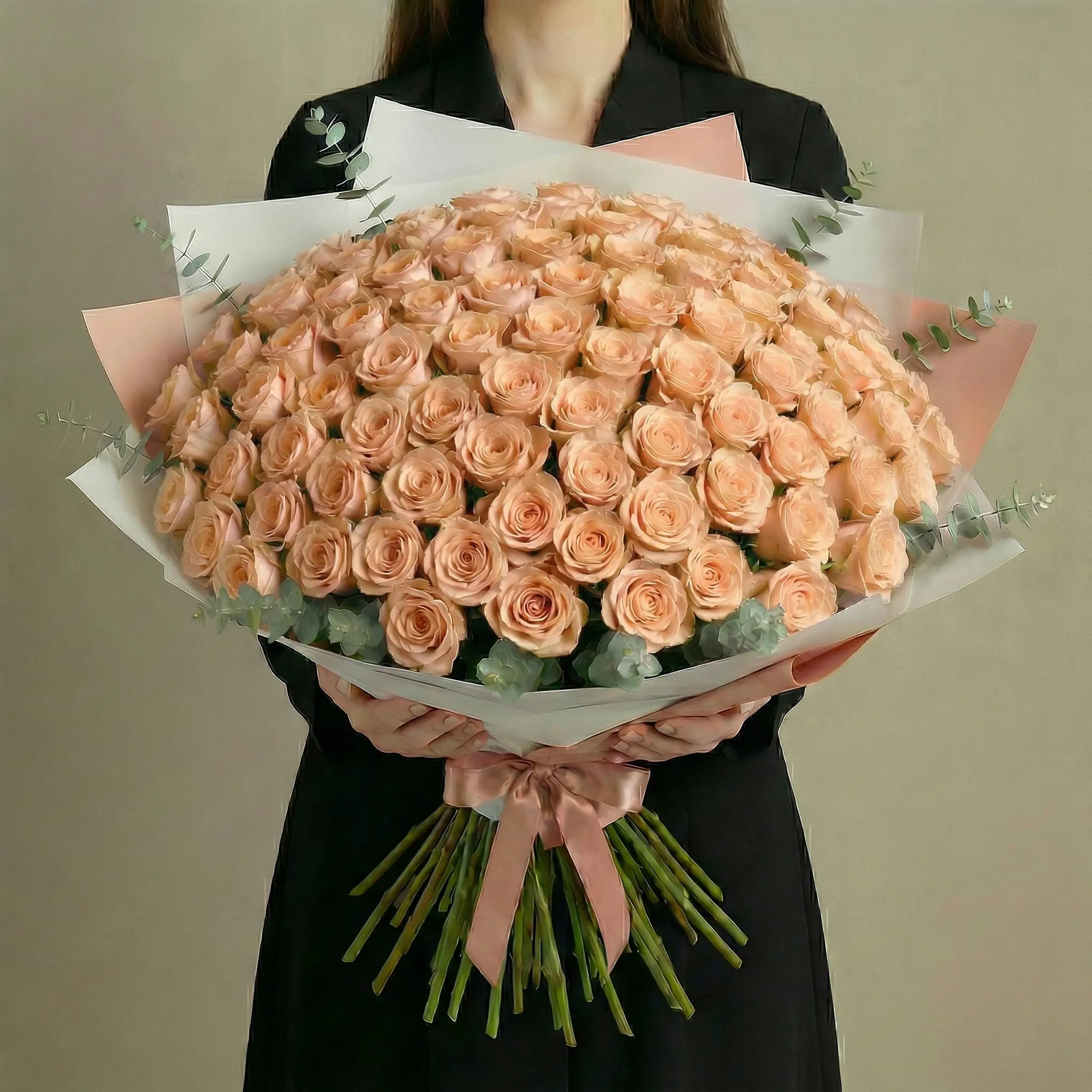 Ramo de Alta Gama de 100 Rosas Cor-de-Pêssego